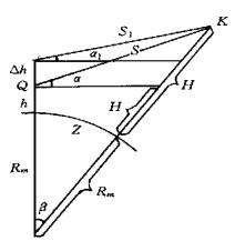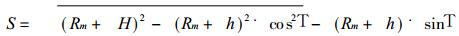 如图 2所示, H为遮挡点的拔海高度, h为雷达天线拔海高度, T为遮挡点相对于雷达站的遮挡仰角, Rm为等效地球半径, S为Q到K的直线距离, 则有