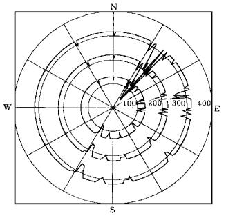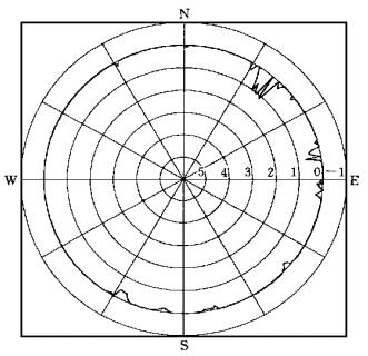| 图 6. 武汉雷达站的遮蔽角图 (图中数字为仰角 (单位: 度) ) | |
