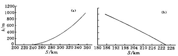 | 图 9. 雷达俯视 (a) 和水平 (b) 探测3 km高的目标物的最大探测距离随天线架高的变化 | |