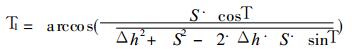 4) 不同架设高度遮挡仰角的转换.对于从地图上读不到的某一近距离的高大遮挡物, 在雷达站址某一高度 (h) 上用经纬仪测量的遮挡仰角 (T), 在已知该遮挡物的拔海高度 (H) 或距离 (S) 的情况下, 是可以转换成不同雷达天线架设高度 (h+Δh) 上的遮挡仰角 (T1) 的 (见图 2):