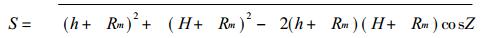 | 图 4. 雷达俯视探测高度为Hm目标物的探测斜距 | |