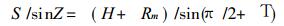 | 图 3. 雷达以仰角T探测高度为Hm目标物的探测斜距 | |