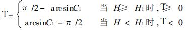 如果计算出来的某一方向的遮挡仰角T < T1, 那么雷达以此仰角探测时, 雷达波束将会与地表相交, 雷达只能看到R1范围内高度低于雷达架高的目标物.