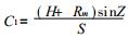 如图 3所示, 已知雷达某一方向的遮挡仰角为α, 则在这个方向雷达以此仰角在标准大气折射情况下探测时所看到的高度为Hm目标物的斜距S1为: