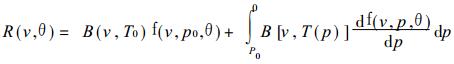其中v是波数, T是温度, p是气压, θ是观测点的卫星天顶角, B是Plank函数, f是大气透过率, 下标0表示地面.