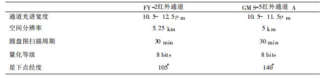 表 1 FY-2A和GMS-5红外通道的基本特性 |