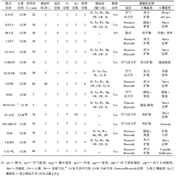 目前研究中常用的是第二阶段的模式, 例如Dickinson等 (1986, 1993) 的生物圈-大气传输方案 (BATS) 和Y.Xue等 (1991) 在SiB基础上简化单层生物圈模式 (SSiB) [8]等, 表 1中列出的是一些主要陆面模式的基本情况简介.