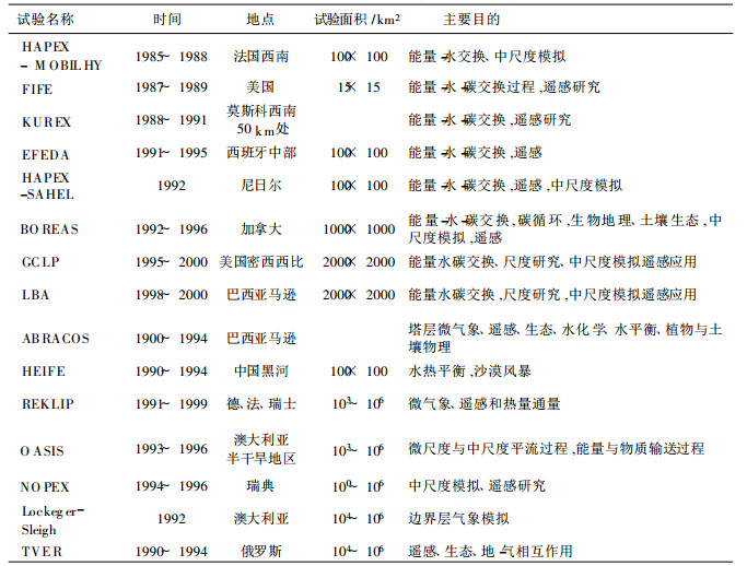 表 2 大尺度地气观测试验 (引自文献[9]) |