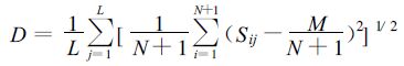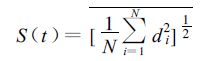 从日常众多的集合预报业务天气图上看,如500 hPa 等压面上的高度场等值线图,会发现集合预报各成员的结果是离散的,说明了未来模式大气的预报不确定性。按照R.Buizza[2]定义的离散度,可以看作为各扰动预报与控制(未扰动)预报之间的平均距离。设有N 个成员的集合预报fi(i =1,2,3,…,N),则集合预报的离散度(S)可用下式计算