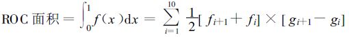 将命中率(f)沿假警报率(g)增加方向(x)积分,就可得到ROC 面积。