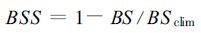 经常使用的是Brier 技巧评分(Brier Skill Score,简称BSS),它是基于BS 定义的,其表达式为