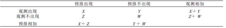 相对作用特征(Relative Operating Characteristic,简称ROC)是信号探测理论(Signal Detection Theory)在数值天气预报中的一种应用,对二分类要素序列进行检验。在每个格点上,考虑一个事件(如降水)发生或不发生两种状态。用实况去检验预报,其结果必是下列情况之一,预报准确、正确否定、漏报和空报。这样一来我们可以构成如下的双态分类联列表(表 2)