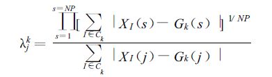 其中,对分类k 在j 点,重心定义为:
