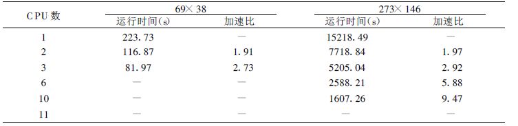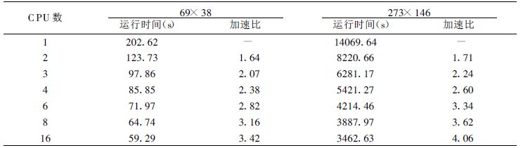 表 5 用MPI 并行化的YH 模式运行结果 |