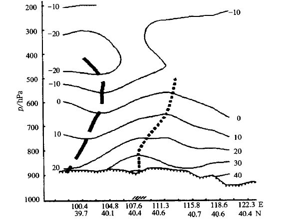 图 1和2 分别为雷雨日和致灾冰雹日08:00平均湿-比有效能量垂直剖面图。比较这两张图可见雷雨日和致灾冰雹日的主要分布特征及其差别: