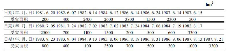 表 2 1980~1987 年6~9 月致灾冰雹日日期及农业受灾面积 |