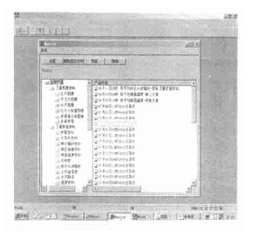为实现上述功能,在软件编制阶段,使用Windows 95下十分直观的树形视图控件进行分类,这样便于用户对下发的产品一目了然,并且可以十分方便地选取某一类产品。最终的实现结果如图 1所示,中间为实时监视的状态列表,其中左面为产品的类别,右面为相应类别产品的目录。