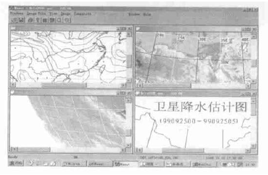 参见图 3,多窗口缩小显示洋面温度等值线分析结果,为气象预报员同时对多种资料进行分析、比较提供了良好的界面。程序模块化设计,接口采用函数调用及文件方式,保证了系统自动处理、人工干预,多窗口、多种类产品分析的互不干涉。