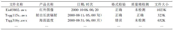为实时检测和分析产品数据,方案设计以产品状态表为核心 (表 1),采用多文档、多视窗技术,使检测、分析、显示等功能同时并进。产品接收、检索分类管理,既可直接选取、查看某一类的所有产品,也可选取全部的产品,并按文件名、获取时间等进行排序。