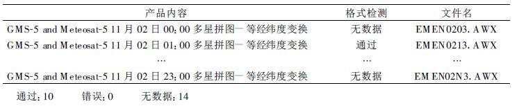 4 运行效果在系统的研制过程中就开始对多种分发产品的格式及数据内容进行检验,发现并订正了多种问题。系统一经完成即投入业务产品的监视和使用,将所有产品的格式及产品中的问题逐一定位,确保所有下发产品数据格式的正确性,产品的质量得到了显著的改善,为质量检测、业务运行准确率统计及业务系统的故障定位等起到了很好的作用。投入正式业务运行以来,运行正常,准确、自动的运行方式为产品质量检验提供了可靠的依据。