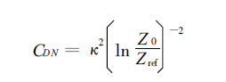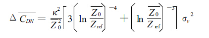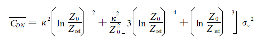 其中σv 为粗糙度在网格元上的均方差。而在目前模式中网格元的中性曳力系数的计算为(14)式右侧多项式的第1 项,由此可以看出,模式计算和(14)式计算的平均值有一定的差异,其差值约为