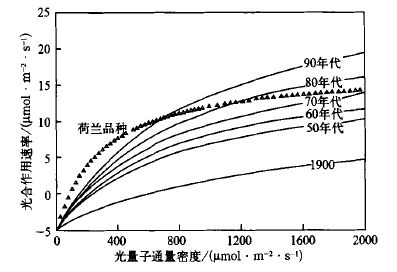 | 图 3. 不同年代冬小麦光合作用光响应曲线 | |