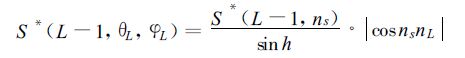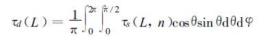 其中τs(L,n) 为倾角θ和方位角φ所决定矢量方向的透过函数。累积叶面积指数 (L-1)~L层次内、倾角为θL、方位角为φL叶片上的直接光合有效辐射为