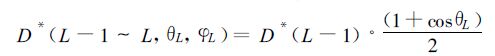 式中σ*=(ρ*+τ*)/2,其中ρ*为叶片光合有效辐射反射系数,τ*为叶片光合有效辐射透射系数,根据各向同性的辐射理论,在累积叶面积指数 (L -1)~L层次内、倾角为θL、方位角为φL的叶片收到的散射辐射量与叶方位角无关,可以表达为