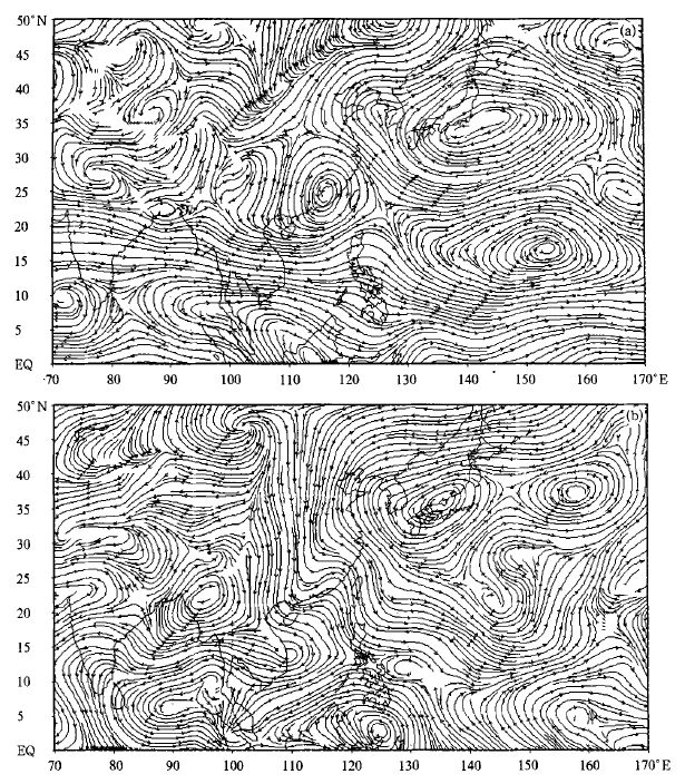 本文还利用1960~1999年4~10月美国NCEP / NCAR再分析850hPa纬向、经向风和1975~1999年月平均OLR资料,研究夏季东亚季风环流与西太平洋副高的关系及其对福建夏季降水的影响。