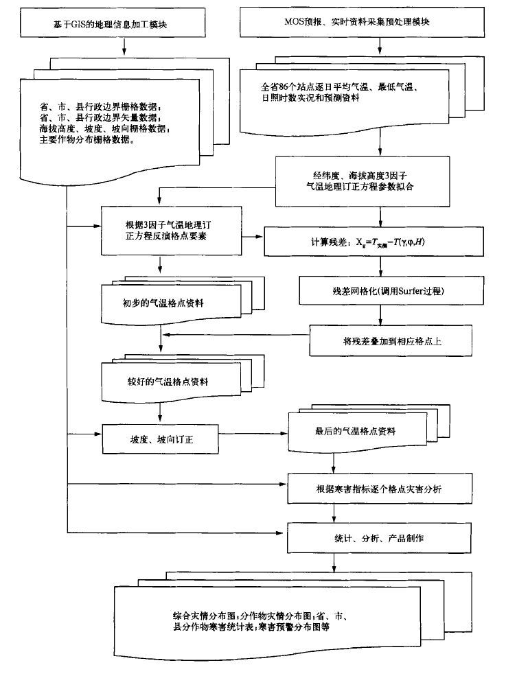 | 图 1. 广东省寒冷灾害监测、预警系统流程图 | |