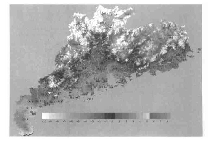 | 图 2. 广东省1999年12月下旬寒害过程最低气温分布图 (℃) | |