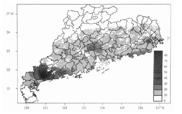 | 图 3. 广东省荔枝种植面积百分率 (%) 分布图 | |