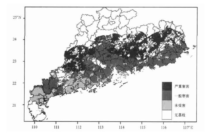 | 图 4. 广东省1999年12月下旬荔枝寒害分布图 | |