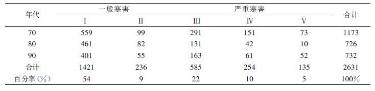 表 2 广东 (86个站)1971~2000年寒害站次统计 |