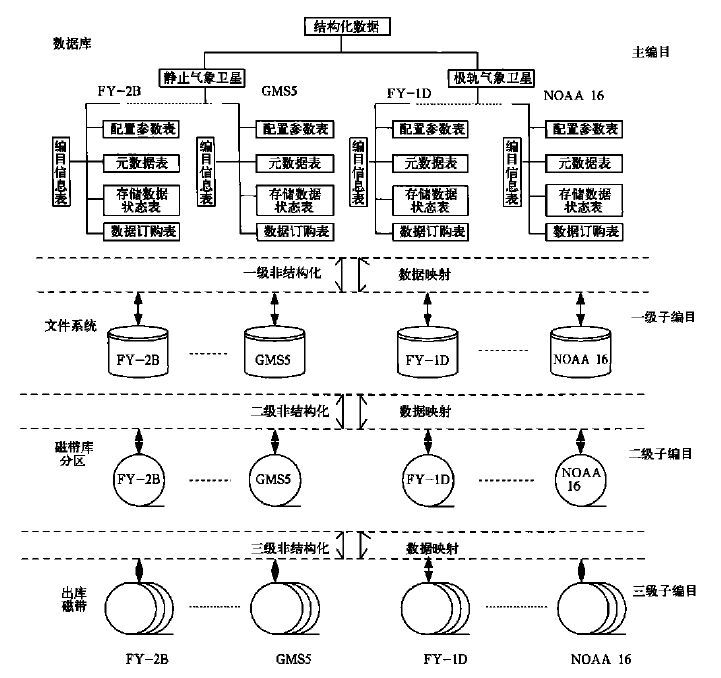 | 图 2. 气象卫星资料的编目结构示意图 | |