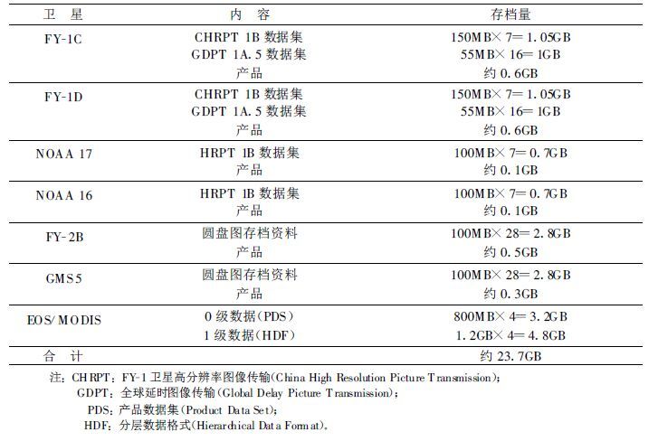 目前国家卫星气象中心资料存档的主要内容与存储量如表 1所示。