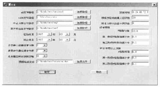 在回归计算前,以图 2 界面通过设置一定的参数,如确定最小因子数、最大因子数、初设Fα值等,并以批量形式建立全国约2230个站点的最高最低温度、最高最低相对湿度、日最大风速、日降水量、总、低云量及能见度等逐要素逐时效共约22万个预报方程。