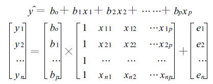MOS预报是建立在多元线性回归技术[3]基础上,研究预报量Y与多个因子之间的定量统计关系: