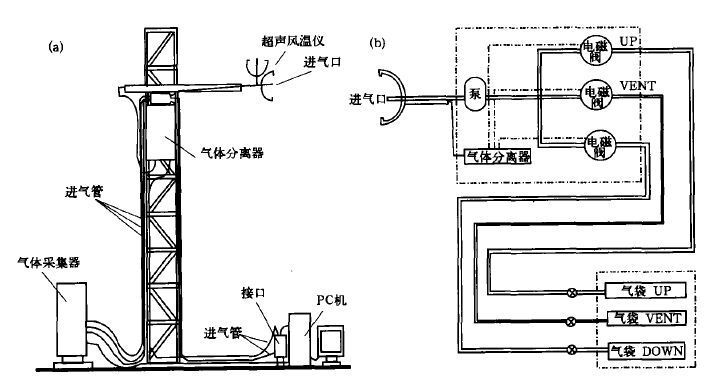 | 图 2. 条件采样装置 (a) 示意图, (b) 气路图 | |