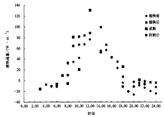 | 图 3. 1999年水稻不同长生期感热通量平均日变化 | |