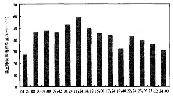 | 图 4. 1999年7月14日04:00~24:00垂直风速脉动值标准差日变化 | |
