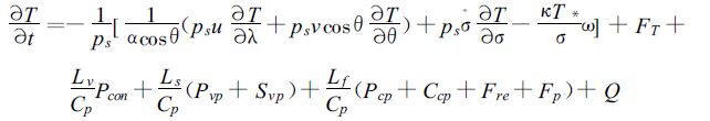 考虑了上述微物理过程后,热力学方程变为如下形式:
