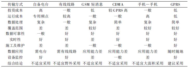 表 1 几种数据传输通信方式性能价格比 |