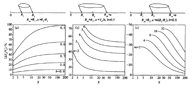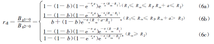 不难证明,视线方向上R1前面的气柱不会影响测量结果,所以这里只讨论Rcs≥R1的情况,若a、b的大小确定:对于式(6a),rdl<1,Rcs=R1时,|rdl-1| 最大;对于式(6b),Rcs=R1时,rdl<1,Rcs=R2时,rdl>1,rdl随Rcs的增加而单调递增,因此,当Rcs=R1或Rcs=R2时 |rdl-1| 最大;而对于式(6c),rdl>1,Rcs=R2时,|rdl-1| 最大。