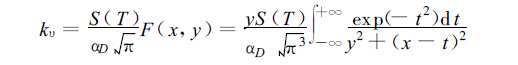 式(2)中,kv是吸收系数,吸收线强度S (T)是温度T 的函数,取参数x=(v-v0)/αD,y=αL /αD,αL 是Lorentz 半宽度,αD 是Doppler 谱线宽度,有几种计算程序可数值计算式(2)中的函数F(x, y)[6~7] 。