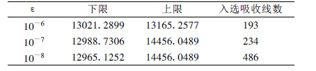 由表 2 可知,选择ε=10-7比ε=10-6要多选41 条吸收线,计算量的增加不大。所以在逐线计算前按ε=10-7,先计算各波段入选吸收线的上下限。