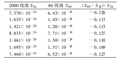 表 3 Hitran 86 与Hitran 2000 线强S 的比较 |
