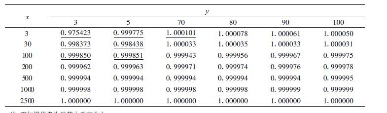 表 4 不同x, y 条件下,kL/km 的数值 |