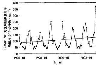 | 图 5. 1996年1月—2002年12月北京上空GOME NO2对流层柱浓度月平均变化图 | |
