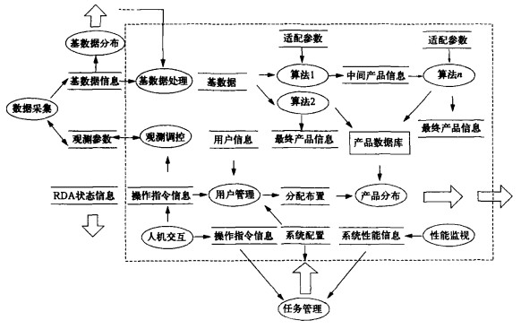 4.1 内部结构开放产品系统的每一个功能单元实现分离, 组成几十或上百个不同的独立执行程序, 包括基数据获取、外部数据获取、产品生成、产品分布、用户接口管理、系统性能监视、RDA监控、RPG管理、数据归档等。
